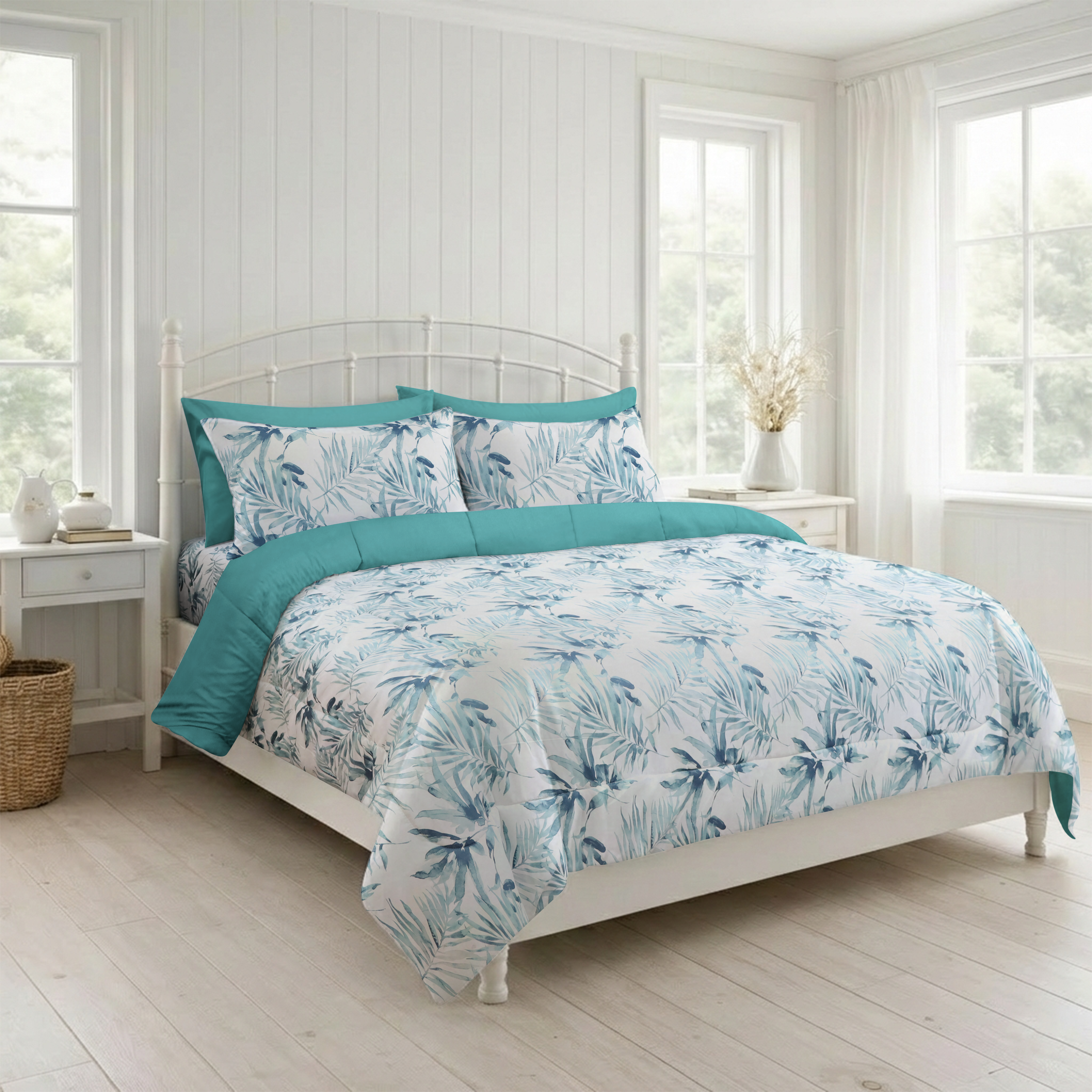ลาย Palm ได้แรงบันดาลใจจากใบปาล์มและธรรมชาติในโทนเขียวฟ้า Two-Tone ให้ความรู้สึกสดชื่น สบายตา และผ่อนคลาย เหมาะสำหรับผู้ที่ชอบบรรยากาศรีสอร์ทหรือห้องนอนสไตล์ธรรมชาติ ช่วยให้ห้องดูโล่ง โปร่ง และน่านอนมากขึ้น